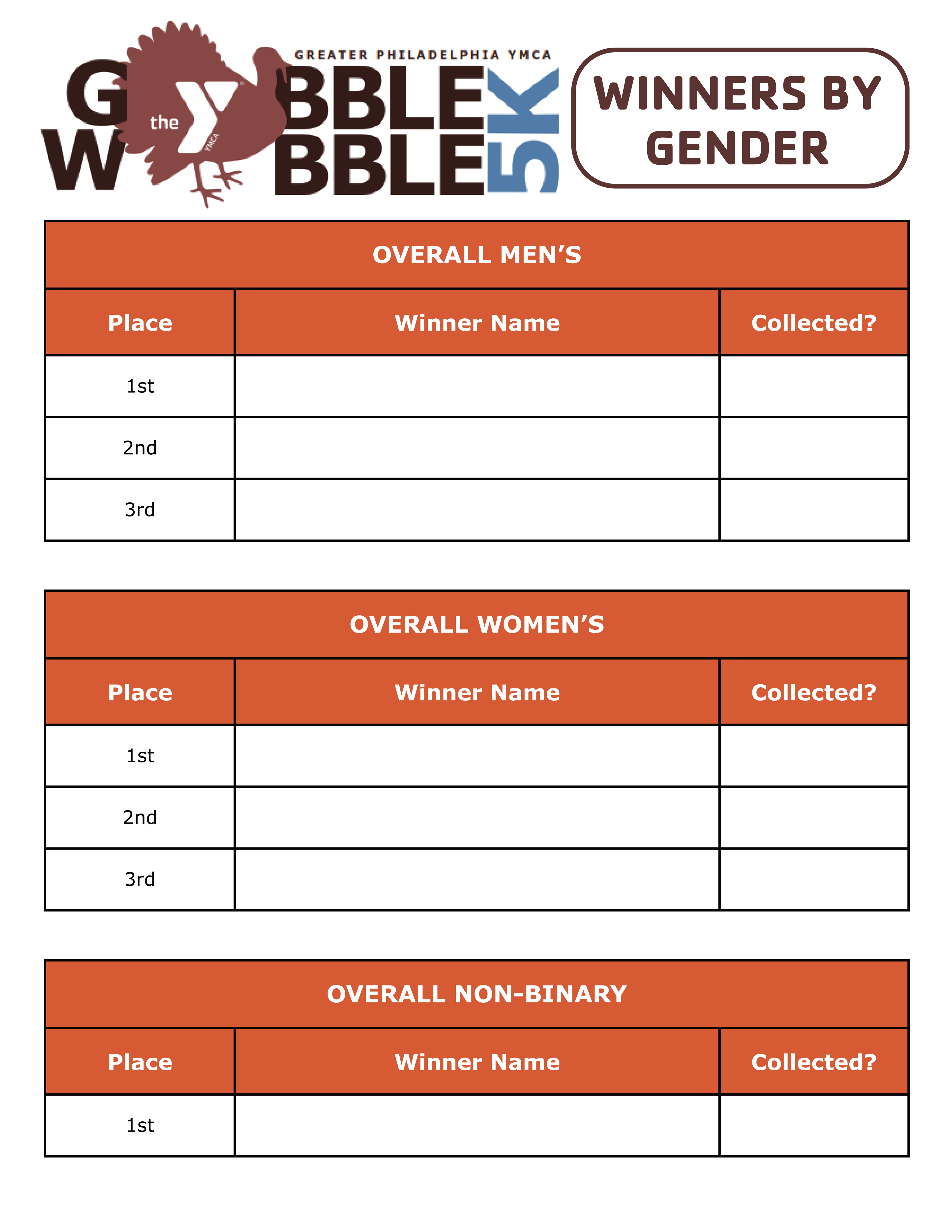 Right: Race Event Collateral - Race Winner Sheet